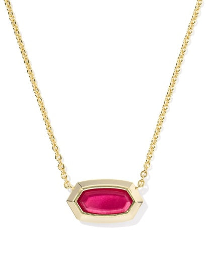 Elisa Bezel Short Pendant Necklace Gold Carmine Red Illusion