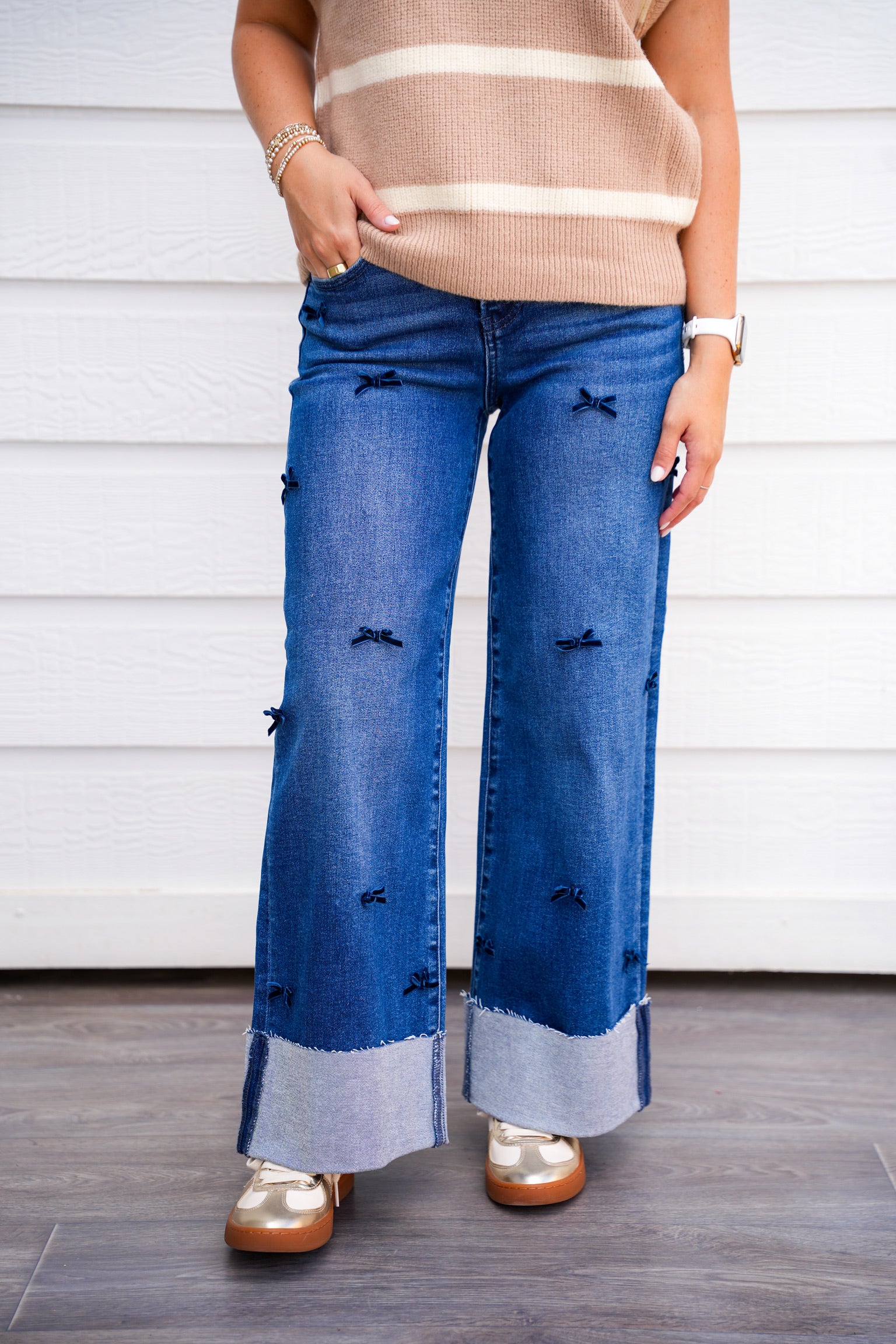 HIGH RISE CROP WIDE RIBBON DETAIL JEANS - Rise 10 1/2" Inseam 27 1/2"(After cuff) 31 1/2"(Before cuff) in size 3/26 - Model Info: Height 5'9" | Waist 24" | Hip 35" - Model is wearing size 3 - Cuff Can't be released