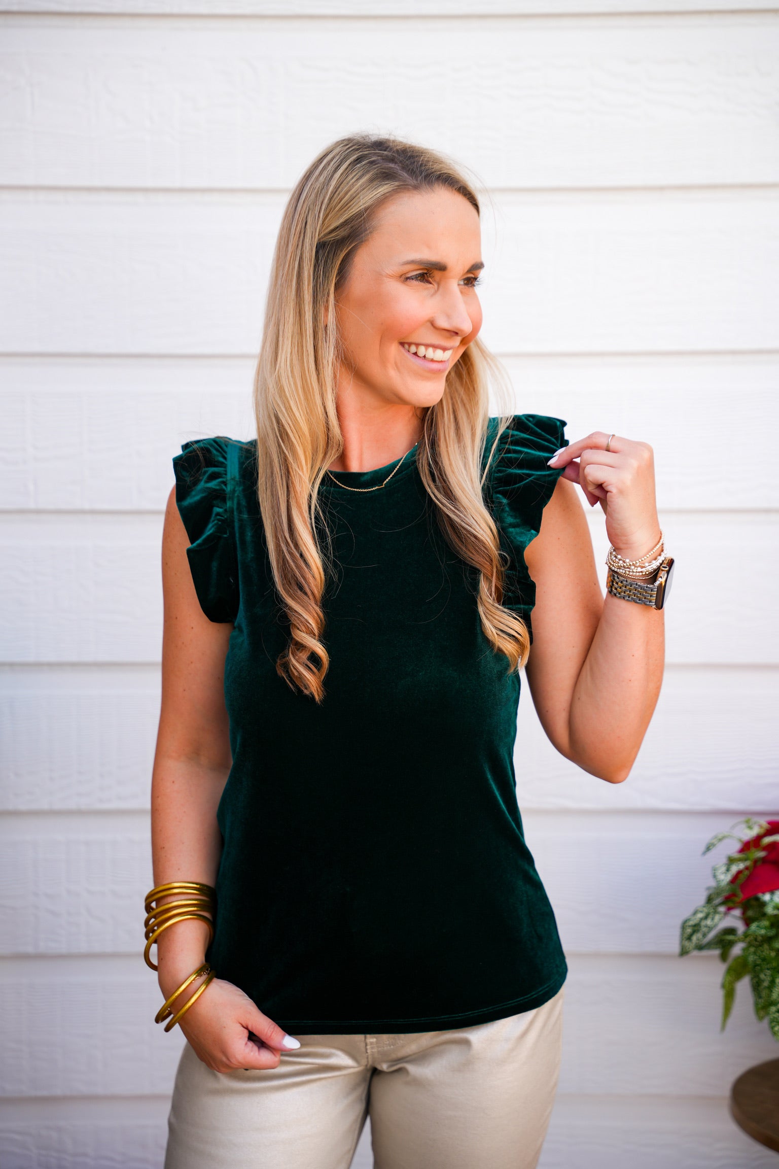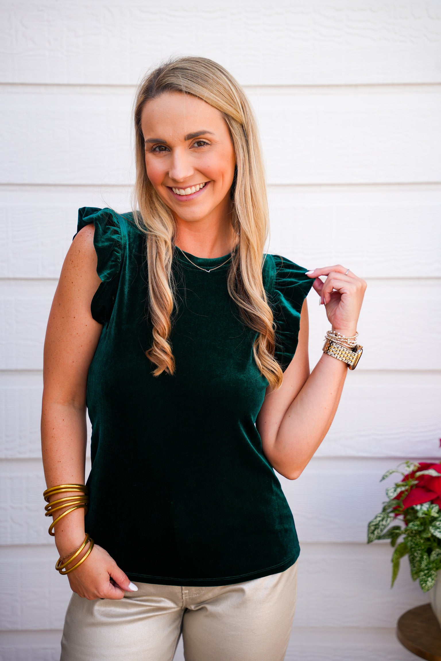 North ruffle trimmed sleeve crew neck velvet tank, a delicate texture elegantly crafted. in classic fit, versatility for both casual outings and formal occasions. Its luxurious construction of style with comfort providing a flattering fit for all occasions.