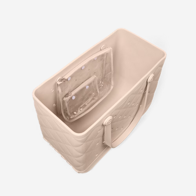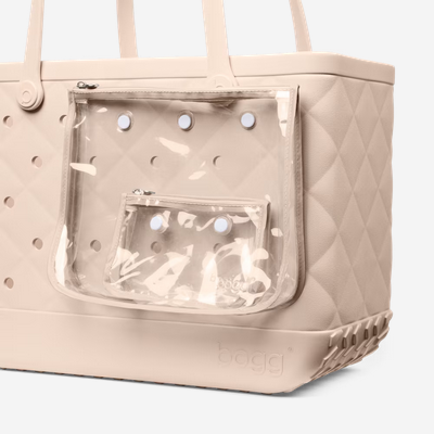 Includes two clear insert bags—perfect for organizing smaller essentials like your phone, sunscreen, keys, or snacks.